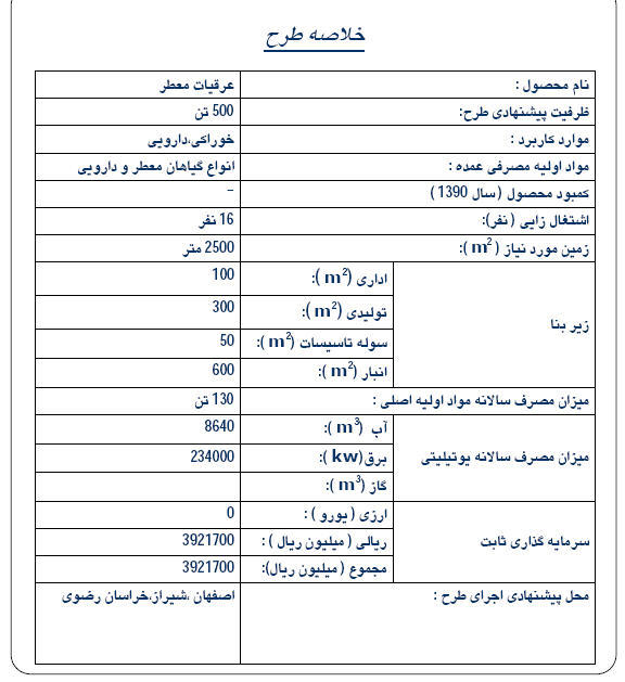 5 – بررسی و تعیین حداقل ظرفیت اقتصادي شامل برآورد حجم سرمایه گذاريثابت.........................................................................................31